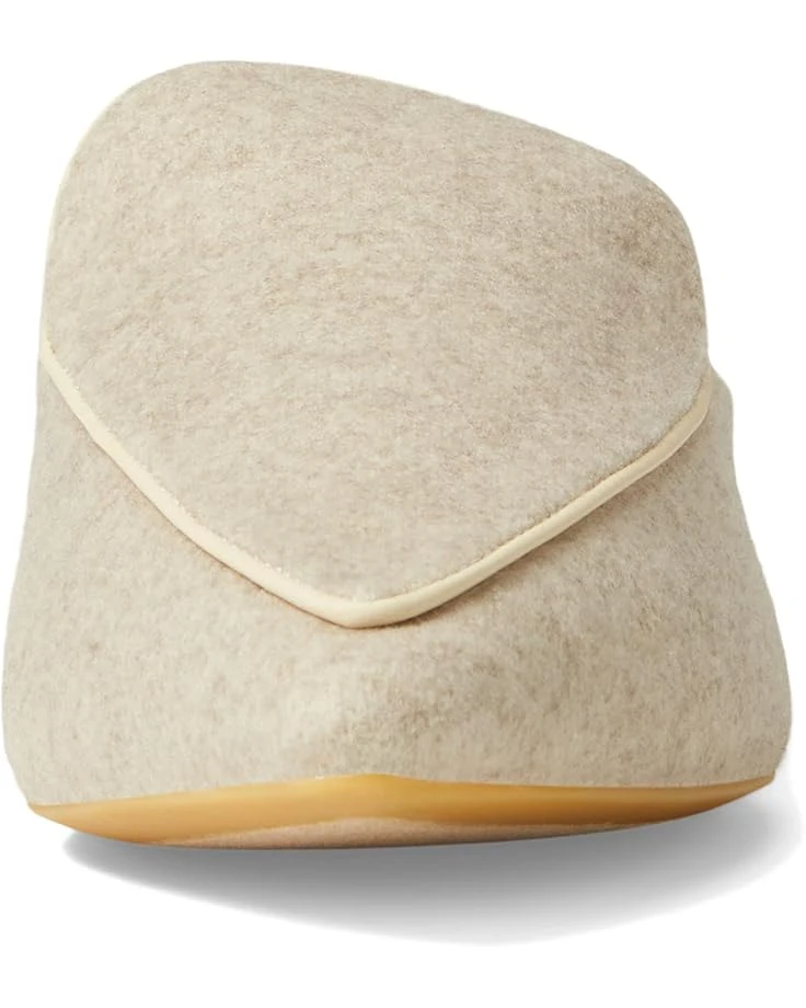 These very well-made Cole Haan shoes, or mules really have a pointed toe. Or, I think they do. When I put them on, my first thought was ‘OHMG!’ just how BIG are my feet?’ I looked in a three-way mirror. I am 5’9″ and wear a size 7 1/2 B feet looked as though I might have accidentally put the box on, they appeared so large. I’ve only had experienced that a couple of times. Also, they were very difficult to keep on – I have standard feet, nothing unusual about them. In the past I’ve worn mules without difficulty. But, I have had a very hard time keeping some mules where they belong – on my feet. Since these were so high over the arch, covering a lot of the foot, they would stay on. WRONG! They did not! They are lovely shoes. Probably a lady with a wider foot may be able to wear them. You might try them. After all, thanks to Zappos we can return without charge. Who knows, they may do what you are wanting. They seemed comfortable for no more than I walked in them.